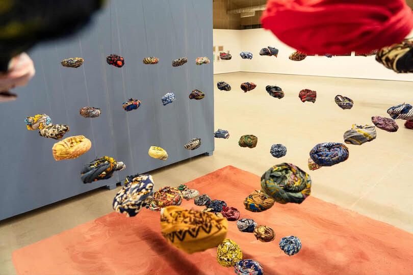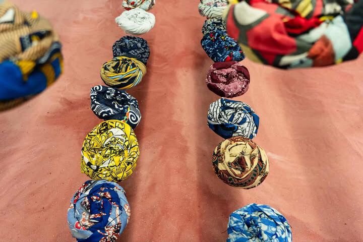 Um dos elementos simbólicos centrais da instalação é a rodilha — objeto tradicional utilizado para equilibrar cargas sobre a cabeça — que surge como metáfora de resistência, permanência e equilíbrio entre opressão e existência.