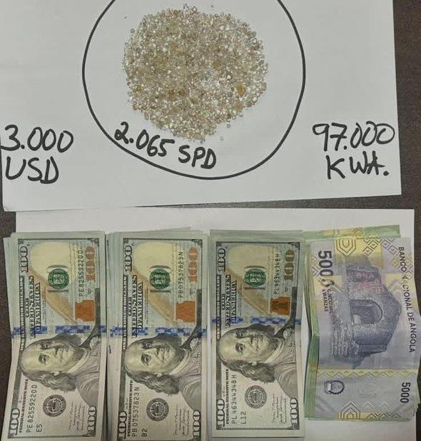 Além dos diamantes, as autoridades apreenderam ainda 3.000 dólares americanos e 97.000 kwanzas, valores encontrados em posse do suspeito no momento da detenção.